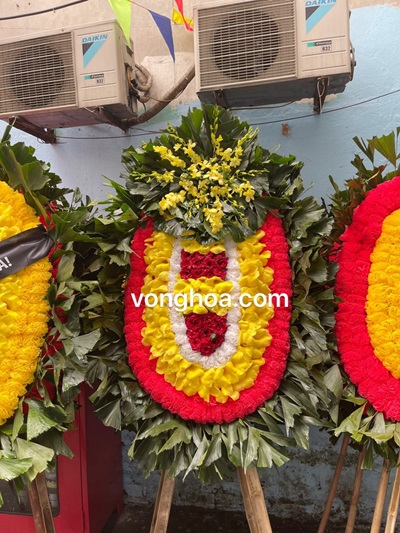 Vòng hoa ở đây cũng chỉ có những mẫu cắm truyền thống sử dụng hoa tươi và hoa giả. Vì thế nếu các bạn cần những vòng hoa đẹp và sang trọng nên chủ động động đặt hoa sớm.