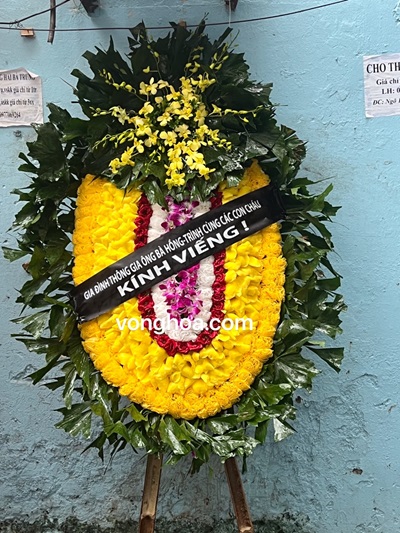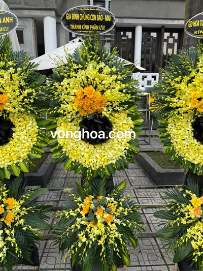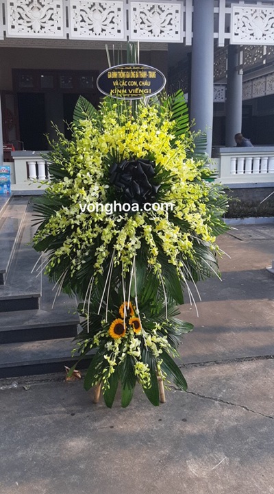 Lẵng hoa viếng lan vàng.